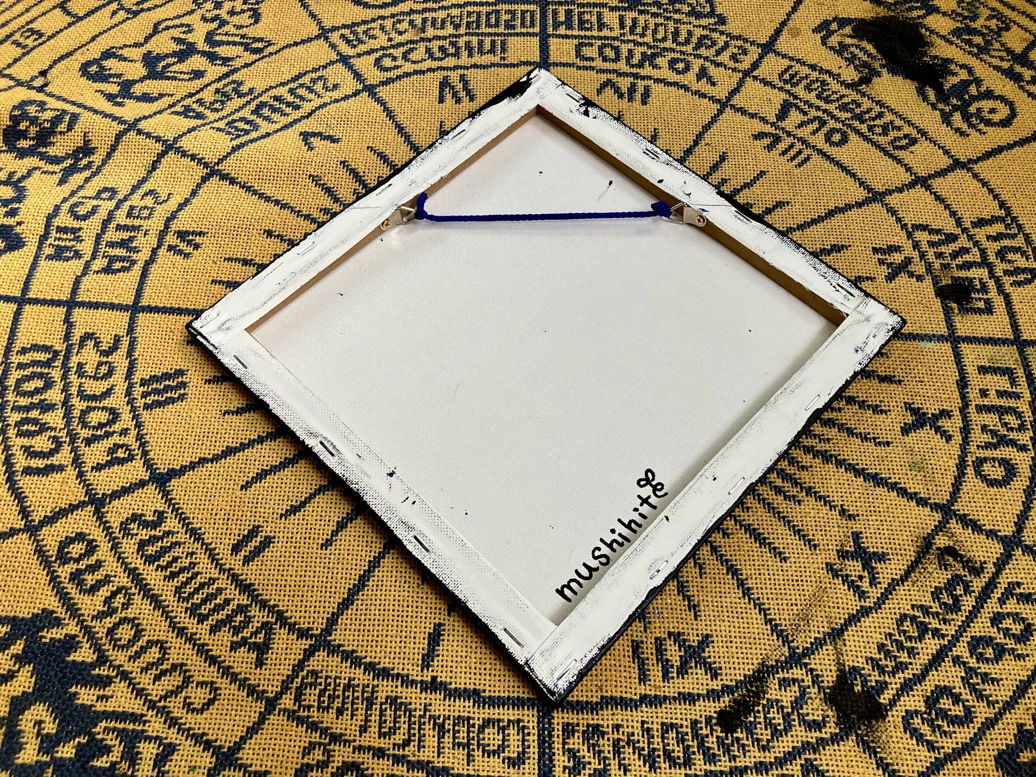 アート作品 節足動物 昆虫 鱗翅目 蛾 オオミズアオ 菱形 キャンバス 中作品
